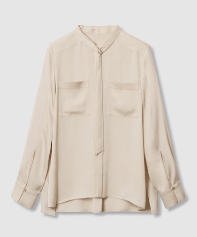 ふんわりと結ばれたボウタイがエレガントな、ホワイトのブラウスです。