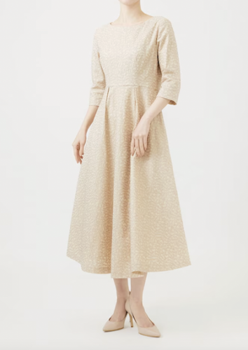 細かなフラワー刺繍のフィット&フレアシルエットドレスです。