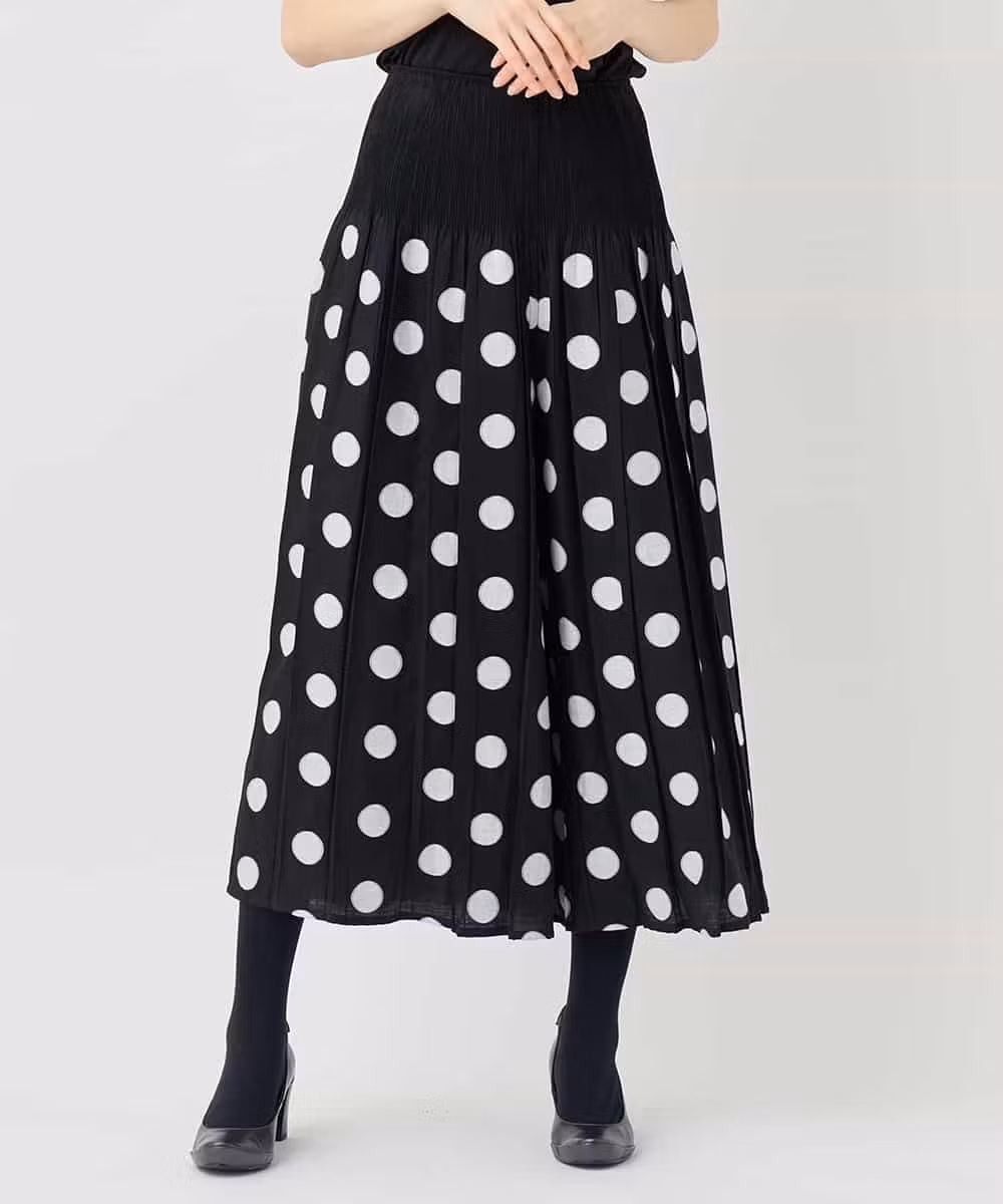 モード感あふれるドットジャカード柄に、ウエストのシャーリングで叶うリラックス感。