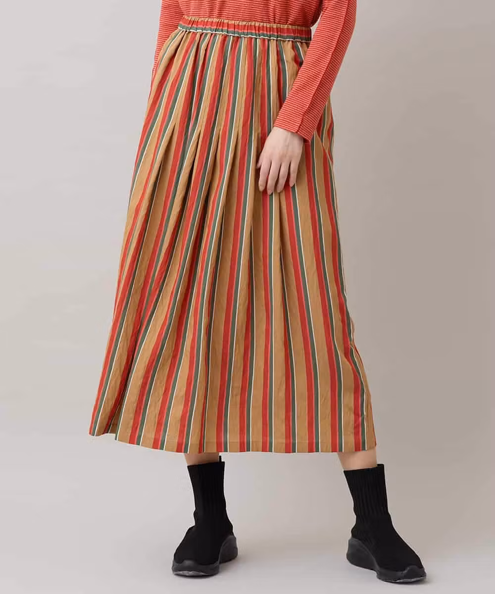 TRUNK HIROKO KOSHINO ストライプスデザインタックギャザースカート /洗える(マルチ)