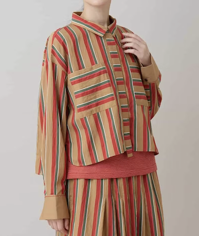HIROKO BIS ストライプシャツワンピース(カーキ)
