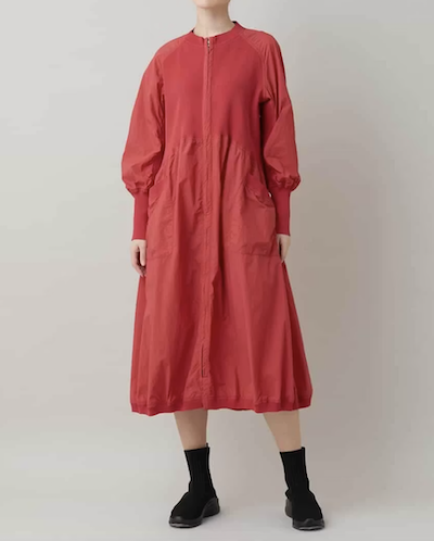 モードとスポーティーを兼ね備えた、レッドのデザインワンピースです。