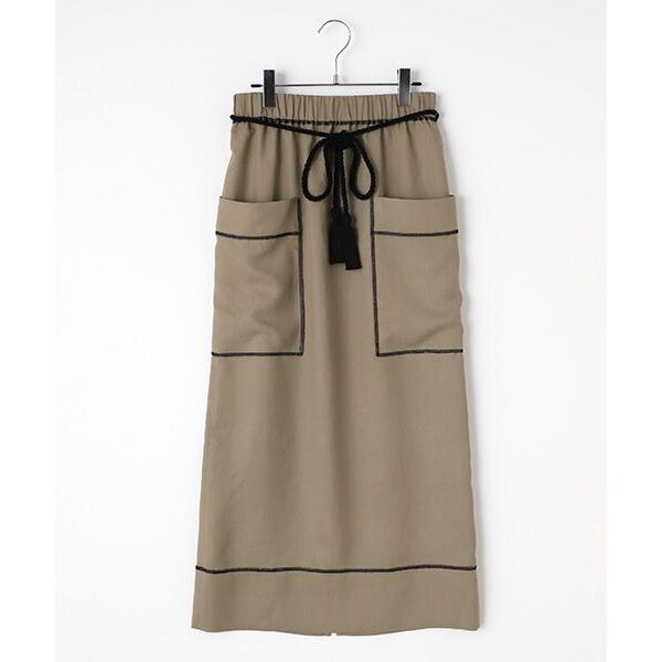 大きめのパッチポケットやステッチワークがポイントのロングスカートです。